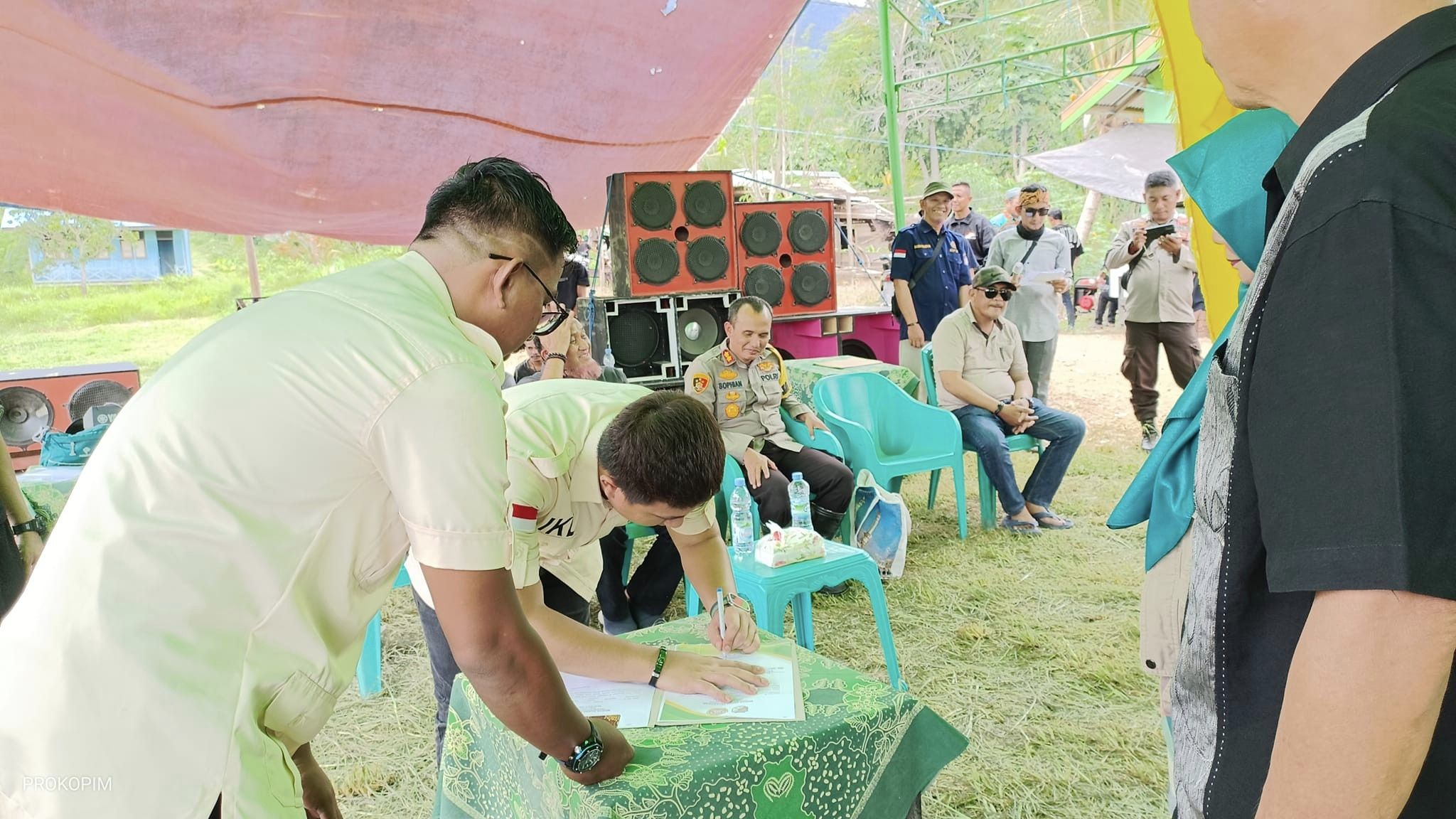 Sumber Prokopim mendetailkan rombongan bupati, selain kapolres Tojo Una-Una,  Tojo Kadis Pemberdayaan Masyarakat dan Desa Dr. Alimudin Muhammad SE,M.Si, Kadis Pekerjaan Umum, Penataan Ruang, Perumahan, Kawasan Permukiman dan Pertanahan Dr. Muhammad Ilyas, ST,M.Si, Kadis Sosial, Pemberdayaan Perempuan dan Perlindungan Anak, Ir. Dalfiah, M.M. Kabag Prokopim Sigit Labolong, S.TTP,MAP, Camat Ulubongka Moh. Idris Muslaeni, S.Sos, Kapolsek Ulubongka Iptu Agus Habibie, Komandan Kompi III Yon B. Pelopor Iptu. Bakhdar, dan Ketua Karang Taruna Kabupaten Tojo Una-Una, Imam Kurniawan Lahay, S.E. Ketua Baznas Kabupaten Tojo Una-Una Aksa Sidora, S.H, Pimpinan PT. Bank Sulteng Cabang Ampana, Fikri Adam, S.Sos., serta Kepala Desa Takibangke Samsudin Labaco beserta Tokoh Agama, Tokoh Masyarakat dan Anggota Karang Taruna Dusun Linte.