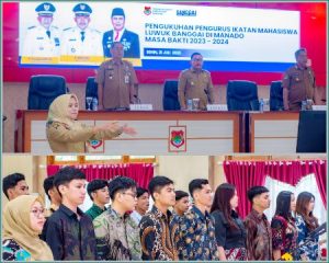 Kegiatan diawali dengan Pengukuhan Pengurus Ikatan Mahasiswa Luwuk Banggai Di Manado, Masa Bakti 2023-2024, Oleh Bupati Banggai.