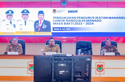 JURNALPOLRISULTENG.OD – BANGGAI, BUPATI BANGGAI Ir. H. AMIRUDIN, M.M MENGUKUHKAN PENGURUS IKATAN MAHASISWA LUWUK BANGGAI DI MANADO, MASA BAKTI 2023-2024.