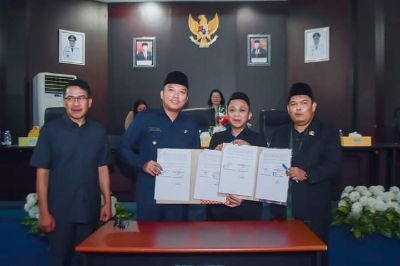 Nota kesepakatan itu ditandatangani oleh Bupati Delis Julkarson Hehi aras nama Pemda Morut dan pihak DPRD ditandatangani Wakil Ketua I Wahyu Hidayat Sudirman dan Wakil Ketua II Muhammad Safri.