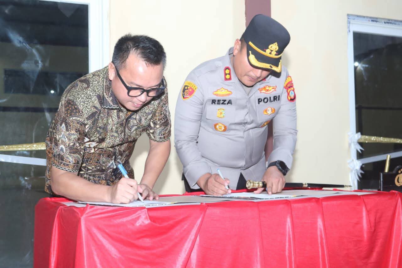 Peresmian ditandai dengan pengguntingan pita dan penandatanganan prasasti, yang dilanjutkan dengan peninjauan gedung olahraga oleh Kapolda bersama rombongan pejabat yang hadir.