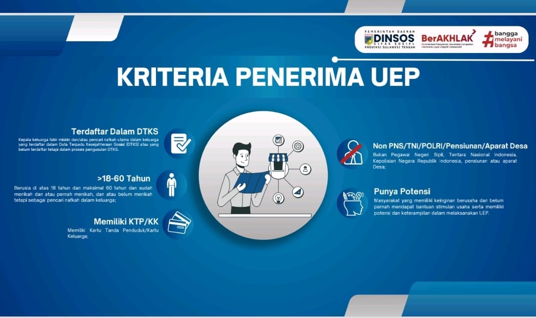 Program UEP bertujuan untuk meningkatkan kemandirian ekonomi masyarakat kurang mampu, khususnya mereka yang terdaftar dalam Data Terpadu Kesejahteraan Sosial (DTKS). Setiap pelaku usaha akan menerima bantuan dana sebesar Rp10 juta yang bersifat hibah, dan wajib membuat laporan pertanggungjawaban administrasi atas usaha yang dijalankan.