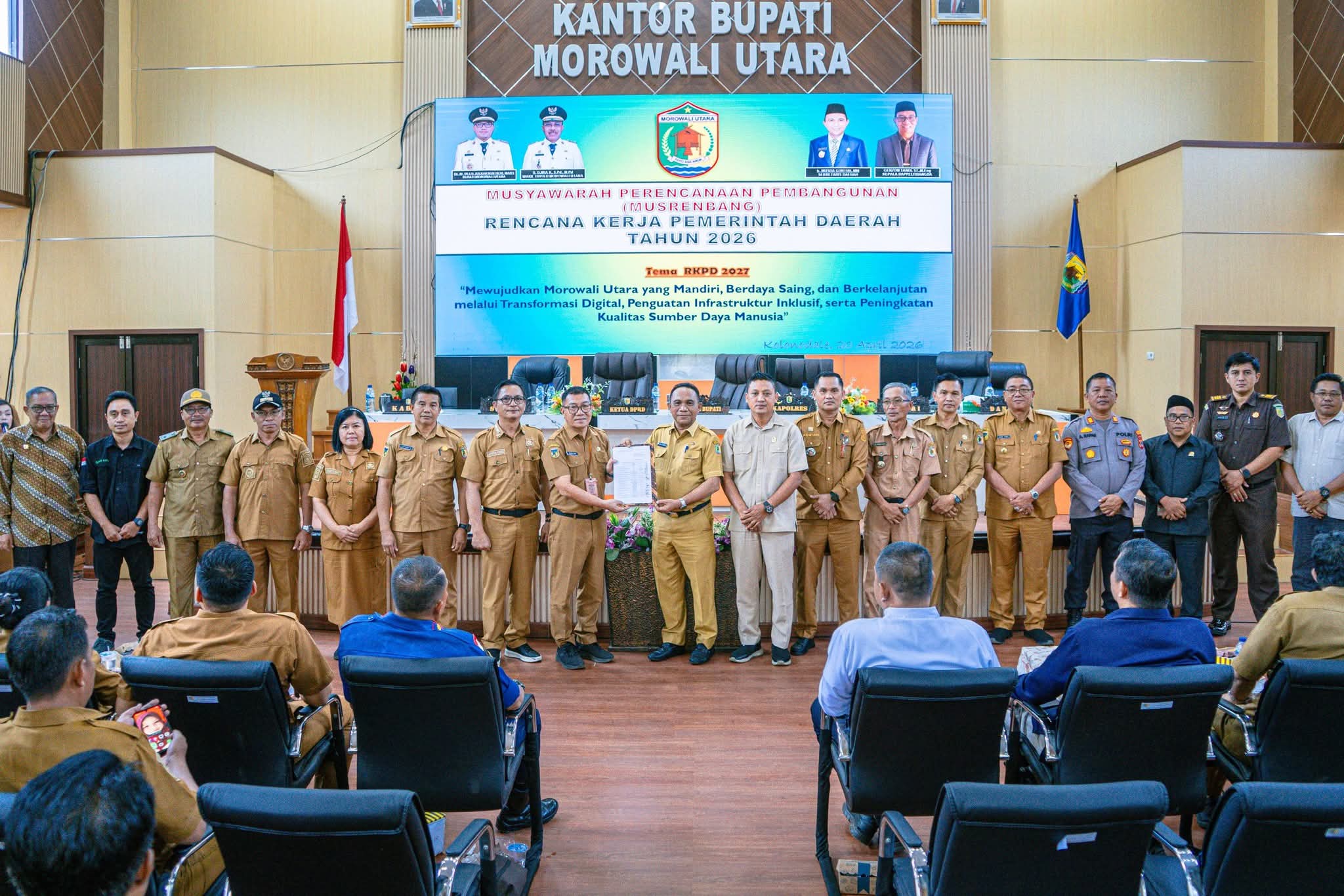 JURNALPOLRISULTENG.ID, KOLONODALE – Wakil Bupati Morowali Utara H. Djira K., S.Pd., M.Pd., secara resmi membuka Musyawarah Perencanaan Pembangunan (Musrenbang) Rencana Kerja Pemerintah Daerah (RKPD) tingkat Kabupaten Morowali Utara Tahun 2026, Senin (20/4/2026).