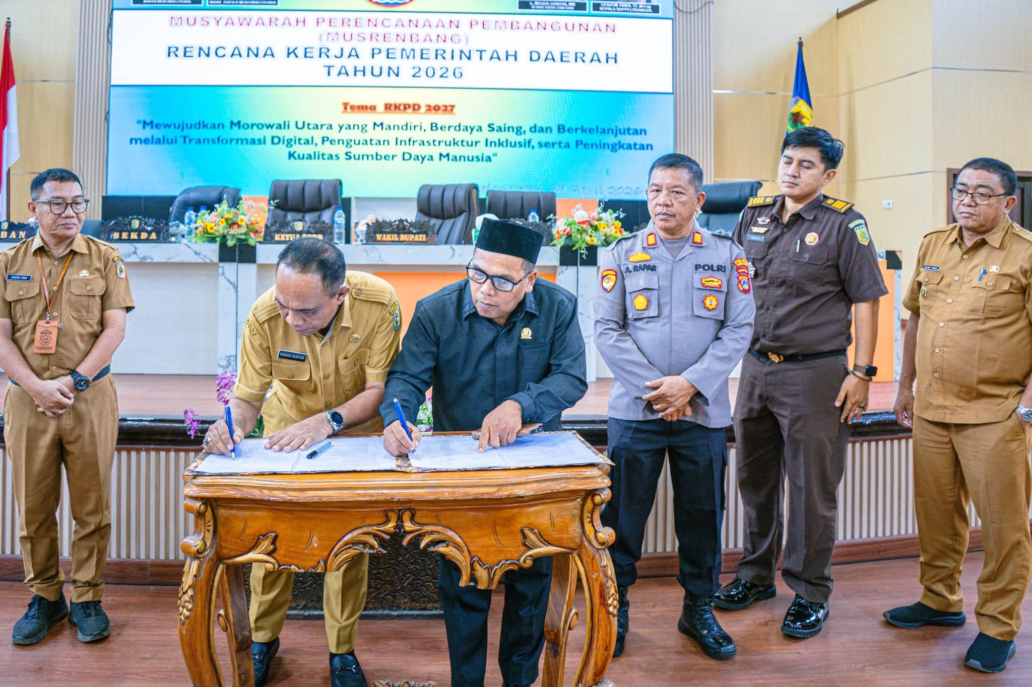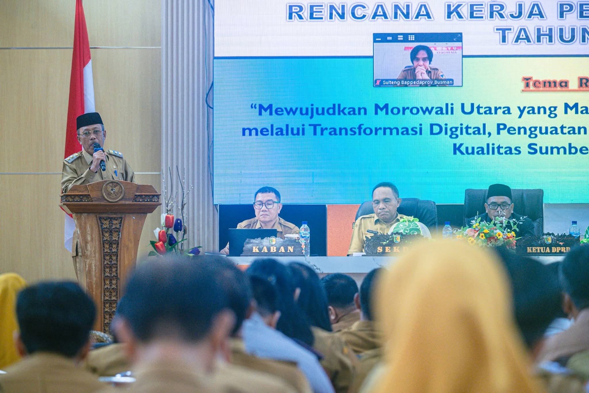 Acara yang berlangsung di Ruang Pola Kantor Bupati Morowali Utara ini mengusung tema “Mewujudkan Morowali Utara yang Mandiri, Berdaya Saing, dan Berkelanjutan melalui Transformasi Digital, Penguatan Infrastruktur Inklusif, serta Peningkatan Kualitas Sumber Daya Manusia (SDM)”.