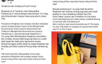 Adapun isi postingan itu menuliskan kalimat “Bingkisan dari Amplop pilih-pilih orang”.