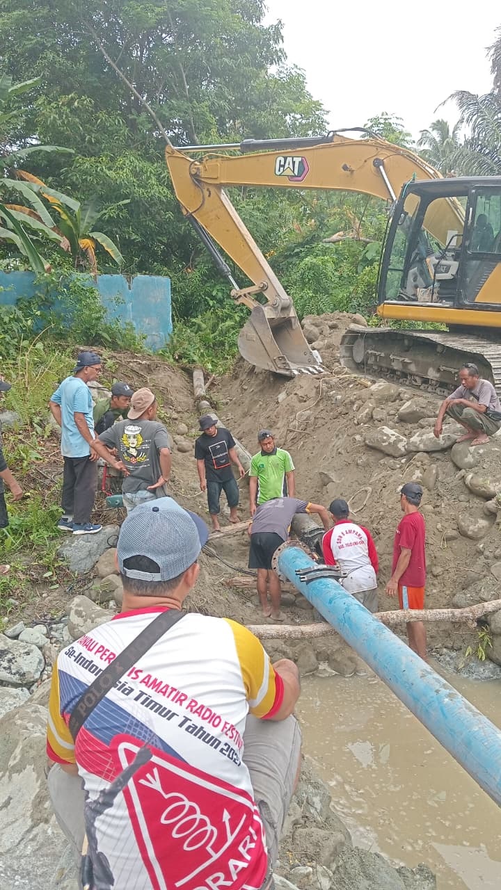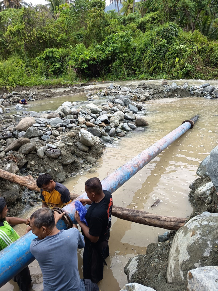 Keterangan yang diperoleh dari Moh. Aspan Supu, saat ini sedang membantu pihak PDAM untuk mengali pipa yang sudah tertanam akibat penimbunan sungai Saluaba.