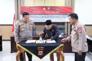 JURNALPOLRISULTENG.ID – BANGGAI, Penandatanganan Perjanjian Kerja Sama KPU Kabupaten Banggai dengan Polres Banggai Tentang Sinergitas Pelaksanaan Tugas Dan Fungsi Dalam Penyelenggaraan Pemilihan Umum Tahun 2024.