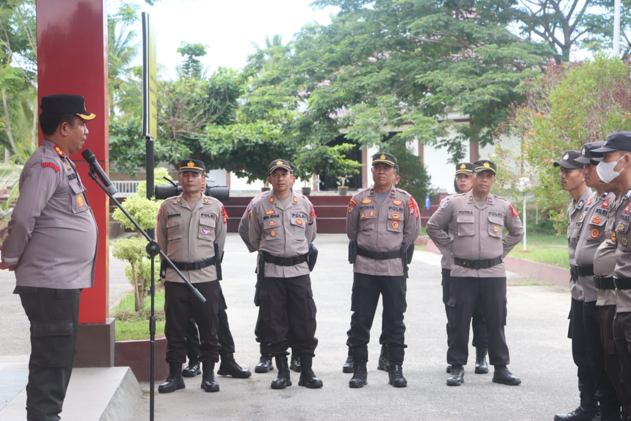 Saat pengecekan personel BKO Kapolres Sigi AKBP Reja menyampaikan bahwa pelaksanaan Pemilu harus di laksanakan sesuai dengan SOP dengan mengedepankan humanis dan netralitas.