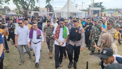 JURNALPOLRISULTENG.ID – BANGGAI, Kabag Ops Polres Banggai Kompol Pino Ary, mendampingi Menteri Pariwisata dan Ekonomi Kreatif (Menparekraf) RI Dr. Sandiaga Uno, WBA, MBA dalam rangkaian acara adat Mombowa Tumpe di Kecamatan Batui, Kabupaten Banggai, Sabtu (2/12/2023) sore.