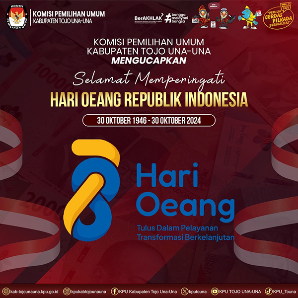 #TemanPemilih, segenap Keluarga Besar Komisi Pemilihan Umum Kabupaten Tojo Una-Una mengucapkan selamat memperingati Hari Oeang Republik Indonesia yang ke – 78 Tahun, 30 oktober 1946 – 30 oktober 2024.