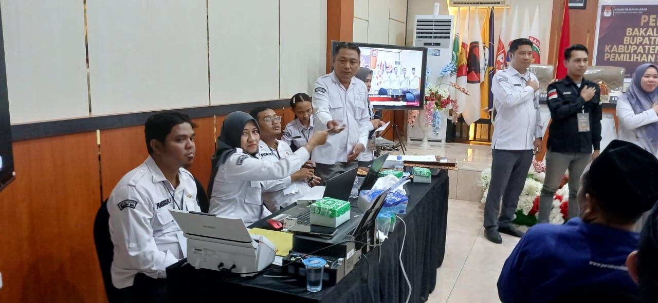Prosesi Kegiatan yang berlangsung diruang rapat KPU Tojo Una-Una, penyerahan dokumen pasangan calon SOLUSI, diterima Ketua KPU Ahdin L. Nondo, serta angota KPU Nidaul dan Arpan Patanda, Naser Lahay dan Zakaria didampingi Sekretaris KPU Kab. Tojo Una-Una Moh. Fitra, yang disaksikan oleh Anggota Bawaslu.
