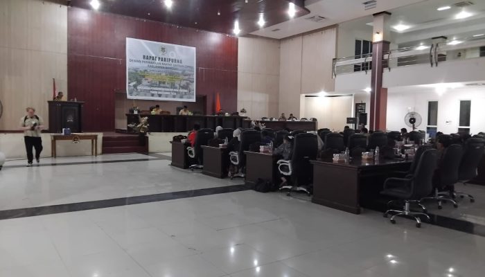 Rapat paripurna dipimpin oleh Wakil Ketua I DPRD Banggai, I Putu Gumi, dan berlangsung di Graha Dongkalan, Luwuk, Selasa (25/11/2025) malam.