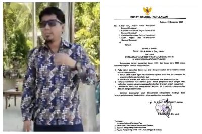 JURNALPOLRISULTENG.ID – BANGKEP, Menjelang memasuki tahun baru 2024 PJ Bupati Banggkep Ihsan Basir SH. LLM mengeluarkan edaran buat masyarakat bangkep agar menjalani malam pergantian tahun dengan Doa dan syukur.