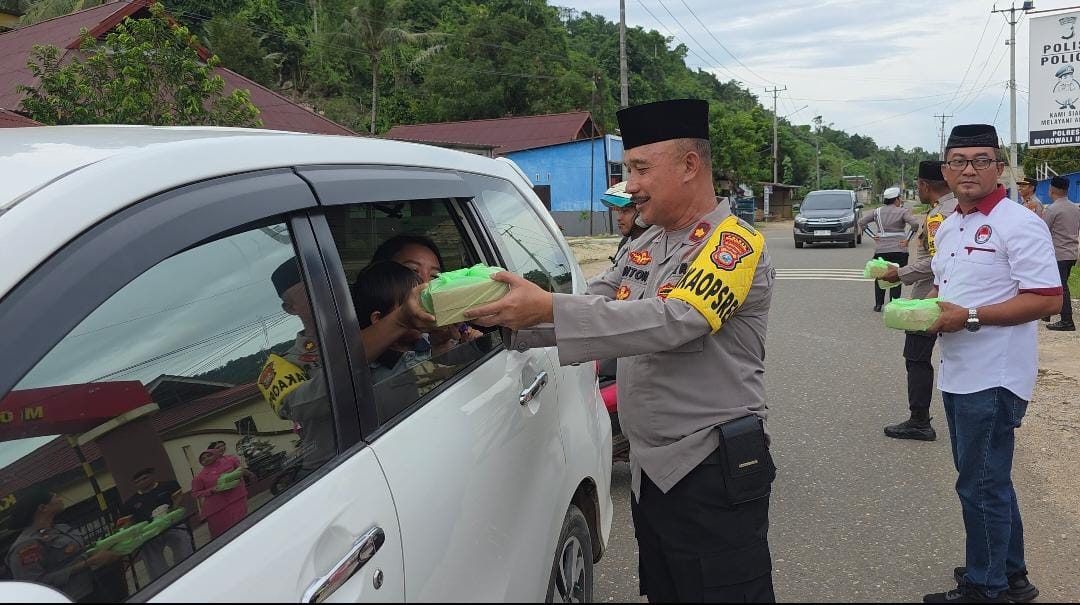 Kegiatan yang berlangsung pada Rabu, 25 Februari 2026 sore ini, Polres Morowali Utara bagikan Takjil gratis sebanyak 200 bungkus takjil dengan menyasar para pengendara roda dua, roda empat, roda enam hingga warga sekitar yang sedang melintas menjelang waktu berbuka puasa.