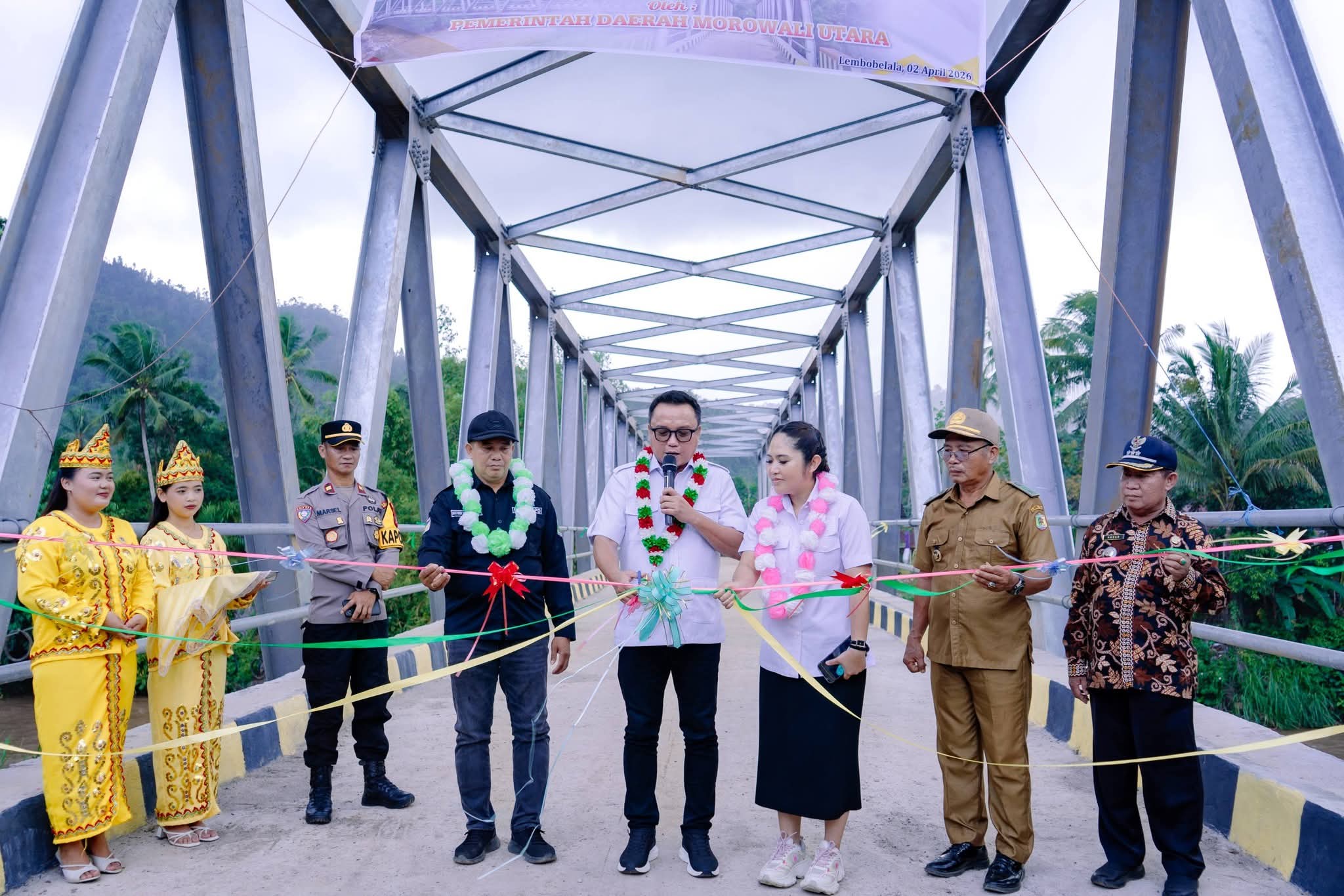 JURNALPOLRISULTENG.ID, LEMBOBELALA – Jembatan strategis yang berada di tengah Desa Lembobelala, Kecamatan Lembo Raya, Kabupaten Morowali Utara diresmikan penggunaannya oleh Bupati Morut Dr. dr. Delis Julkarson Hehi, MARS, Kamis sore (2/4/2026).