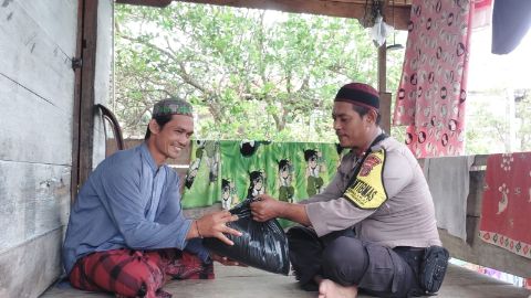 Kepedulian Bhabinkamtibmas dari rumah ke rumah untuk membagikan sembako,mudah-mudahan dengan bantuan ini dapat berguna dan mempererat hubungan tali silaturahmi diantara kita.Ungkap Irwan.