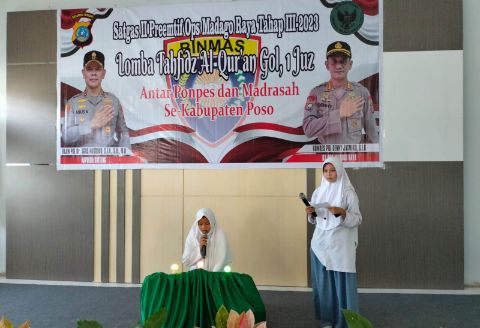 JURNALPOLRISULTENG.ID – POSO, Satgas II Preemtif Ops Madago Raya Tahap III-2023 Menyelenggarakan Lomba Tahfidz Al Qur’an Gol. 1 Juz dan Lomba Ceramah Kamtibmas antar Pondok Pesantren dan Madrasah se-Kabupaten Poso. Selasa, (25/07/2023).